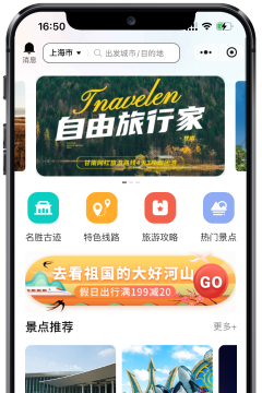 旅游小程序定制开发案例,包括景点推荐、路线推荐、可以进行在线支付,预定旅游路线。活动报名,也支持分销赚佣金等。
