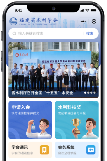 核心功能:申请入会、批量导入名单、入会审核、会议文件下载、会议安排,座位表、在线签到、会议材料、专家简介、论文集、荣誉证书、通知公告、科普文章等。